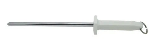 A chaira lisa Mundial é a ferramenta ideal para manter o fio das facas sempre alinhado, prolongando sua eficiência no corte. Com 30,5 cm de haste em aço inoxidável cromado e cabo em polipropileno branco, oferece durabilidade, higiene e firmeza no manuseio. Indicada para cozinhas profissionais, açougues e uso doméstico.
